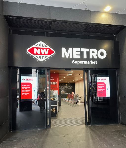 赤いロゴのニュージーランド発スーパーマーケット。高品質な品揃えが魅力で、食品系のお土産選びに最適です。