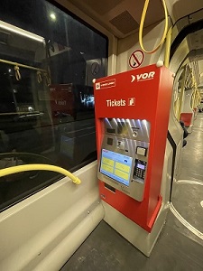 Straßenbahn車内設置の券売機(打刻の機械も車内にあり)