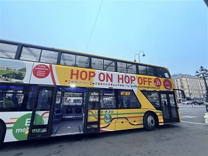 観光要所だけに停留する、時間内乗り降り自由の観光客向けのバスです。