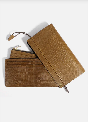 2枚の収納フラップから作られていて、カード入れ、小銭用のジッパー付きポケット、お札用のポケット、中サイズのポケットなどが付いています。