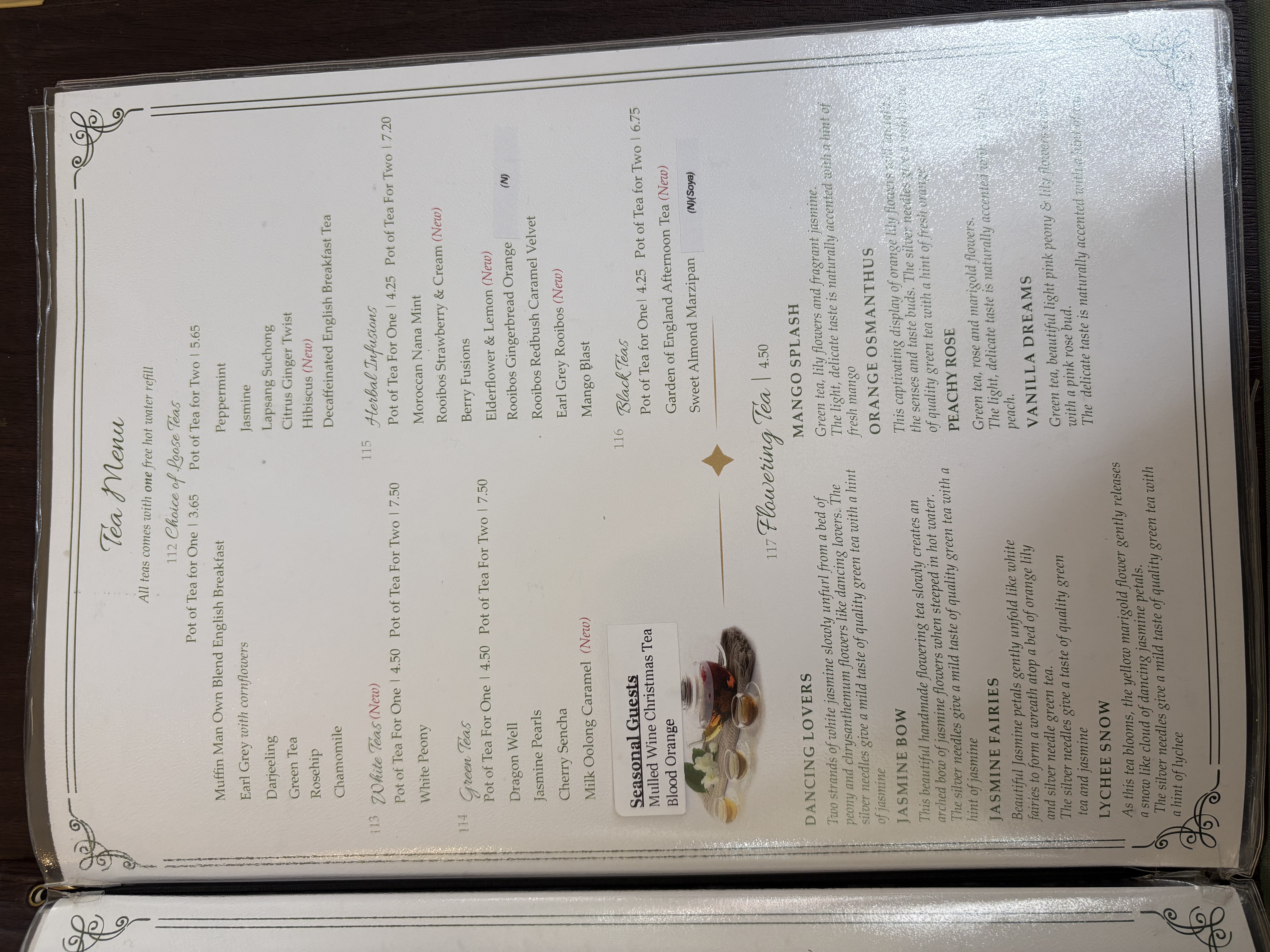 また、マフィンマンオリジナルブレンド以外の紅茶が良い方は、たった1£の追加料金でティーリストの中から紅茶やハーブティーを選ぶことができます。