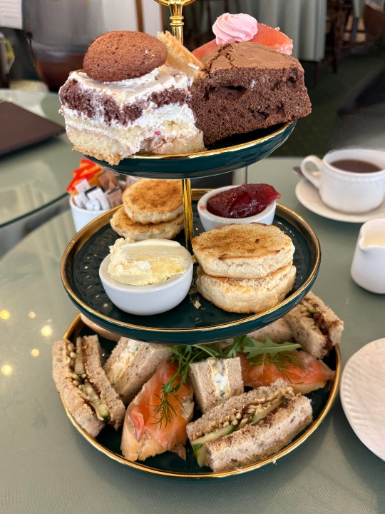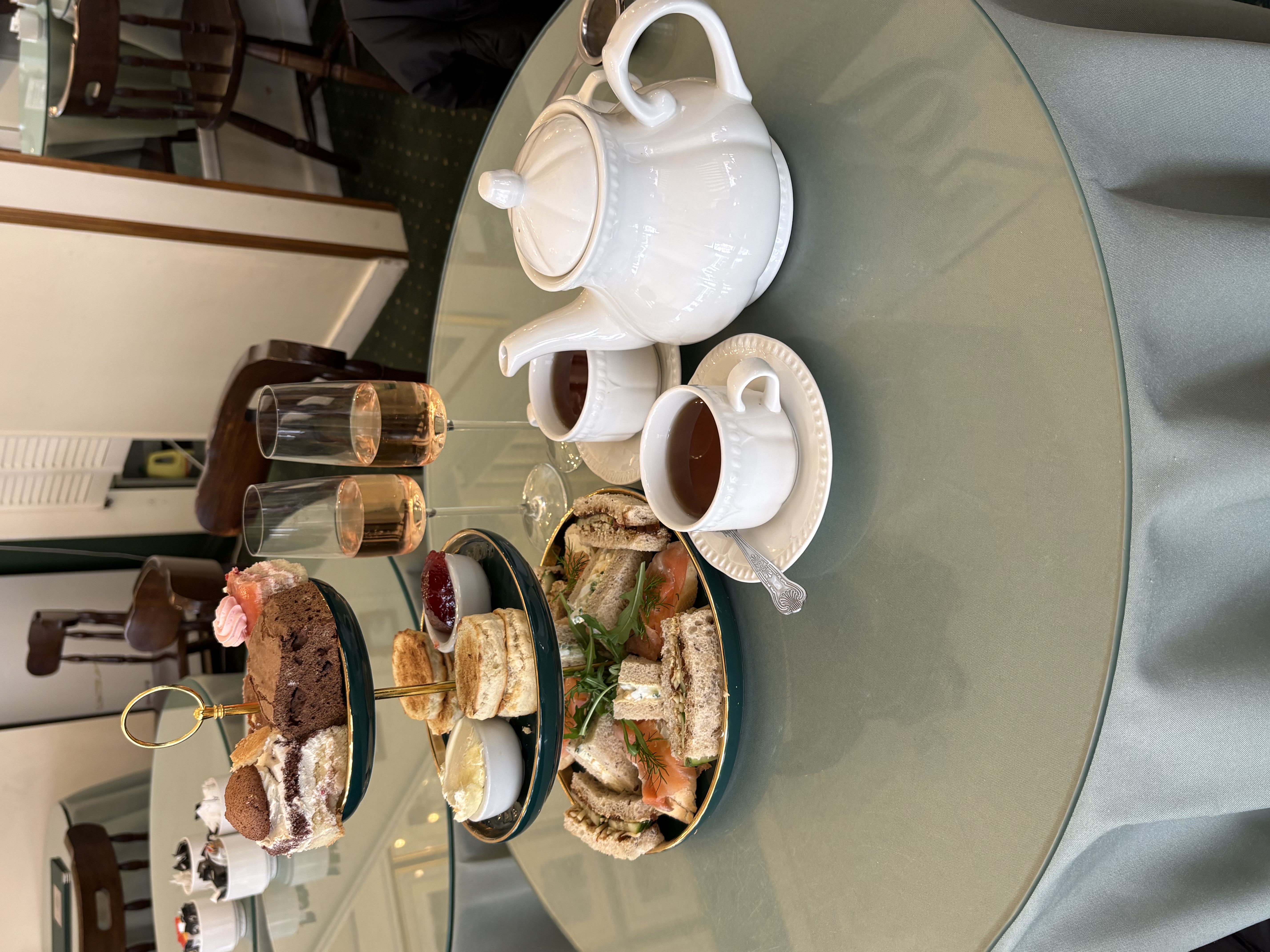 3段のティースタンドにケーキ、スコーン、サンドイッチが乗せられたクラシックな組み合わせで、冷たい飲み物と紅茶もサーブされ、とても二人で38£とは思えない充実した内容です!♡