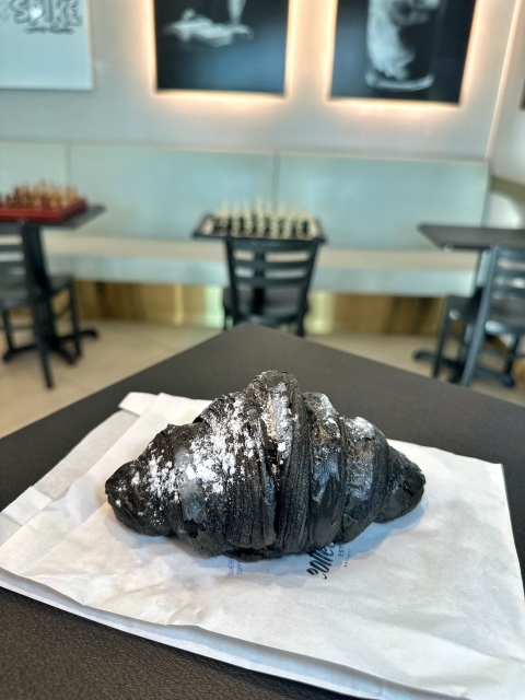 炭を使ったクロワッサンで、チョコレートが入っています。