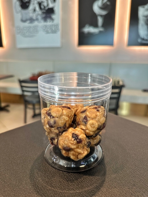 ピーナッツバター、チョコレートチップ、ドライクランベリー、オールドファッションオーツ、シリアル、フラックスシード、チアシードとはちみつを使用したひと口サイズのスナックです。ピーナッツバターの濃厚な風味と、ほのかな甘さがクセになります。おやつや、ちょっとしたエネルギーチャージにもおすすめです💟