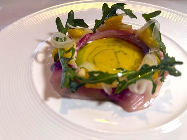 新鮮なハマチの甘みと、フルーツの爽やかな酸味がよく合い、とても軽やかな味わいでした。