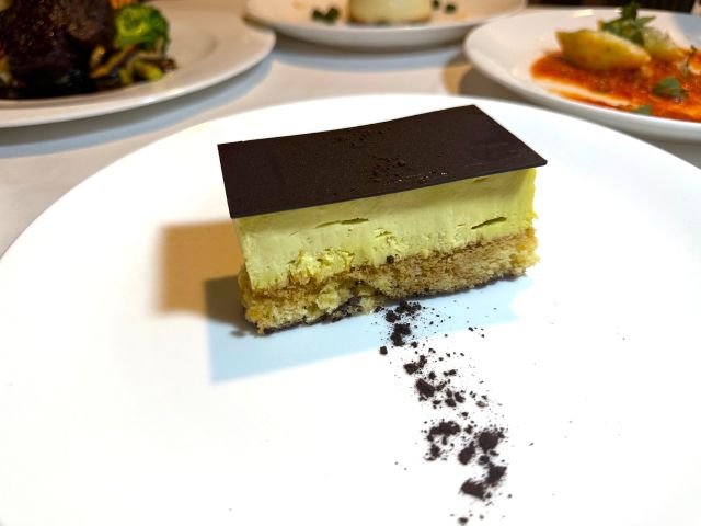 コーヒーのほろ苦さと、ピスタチオの香ばしい甘さが絶妙に調和していて、軽やかなのに満足感のあるデザート🍰