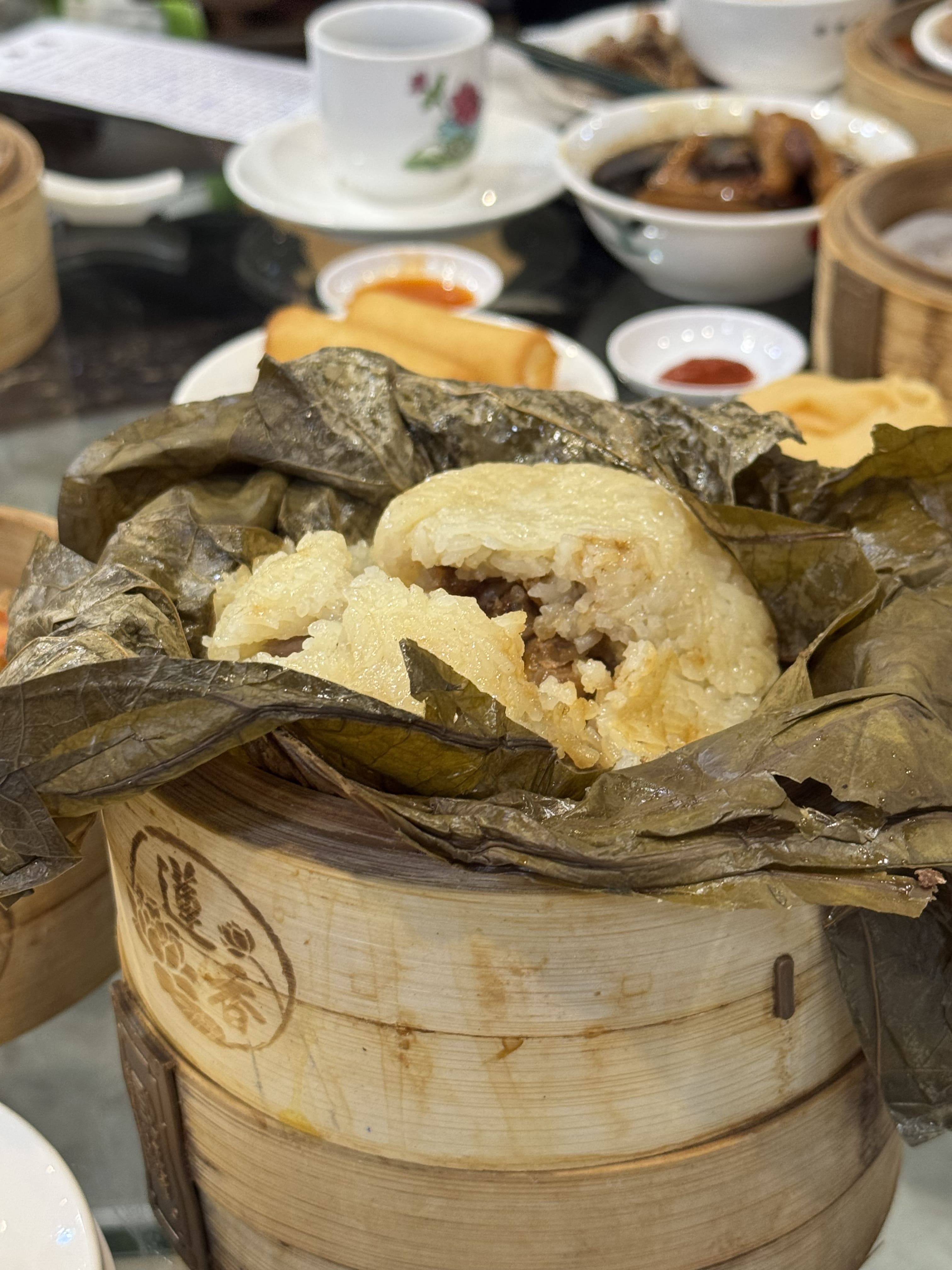 ご飯物で人気の中華チマキは鶏肉やシイタケの旨味が蓮の葉で包まれた香り高い一品。