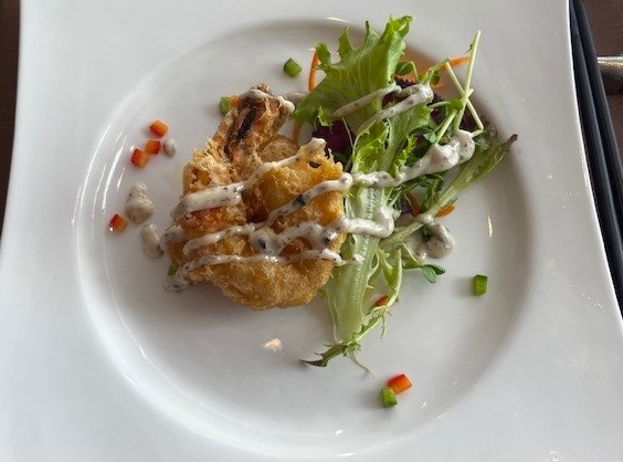 添えられた生野菜と芳醇な香りのトリュフソースをからめて一緒にお召し上がり下さい🦐