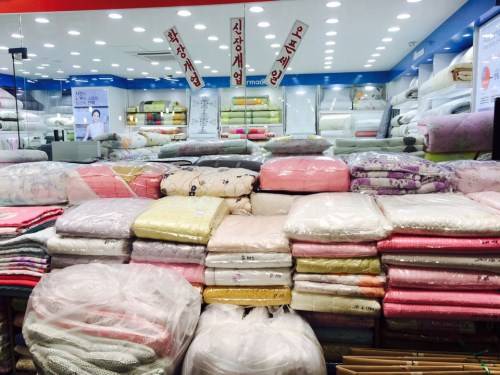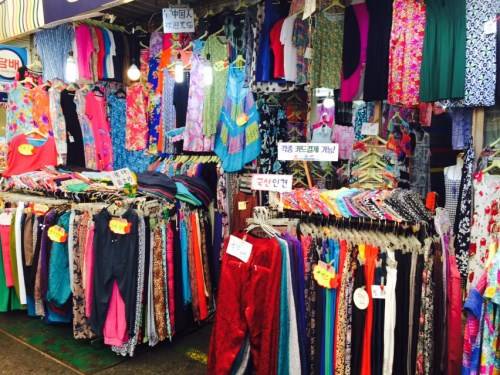 広蔵市場は、絹織物や韓服をはじめ、寝具類、手芸品、青果、おかず、干し魚、魚、肉、野菜など、充実な品揃えで現地の方も多く利用しています。