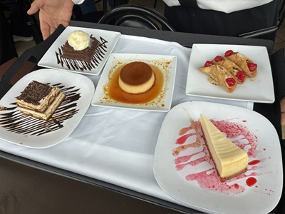 前菜は、クラムチャウダーもしくはグリーンサラダから。メインは、サーモン、パスタプリマベラ、チキンパルミジャーナ、もしくは白身魚のバサから選び、デザートはクレームキャラメル(プリン)です。