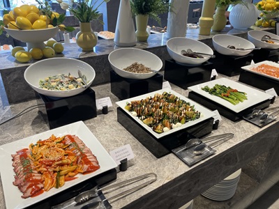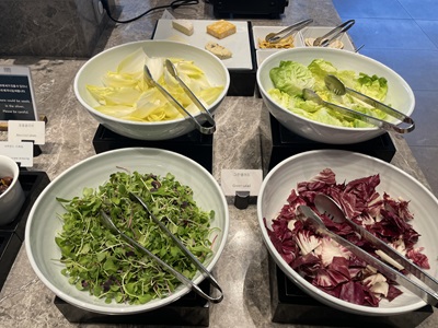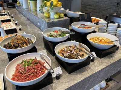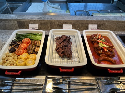 メニューは大きくサラダ/メイン/デザートの3つで構成され、は種類が豊富でした。韓国料理からお肉、刺身、中国料理、イタリアンなど人気のメニューが揃っていました。