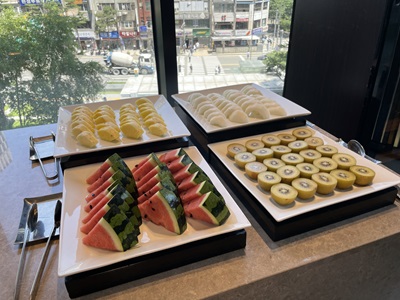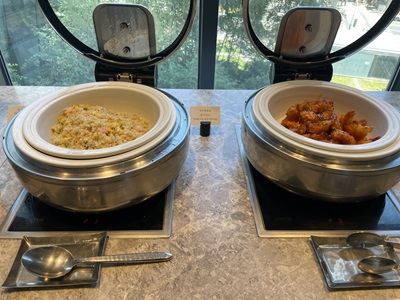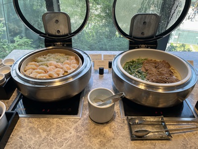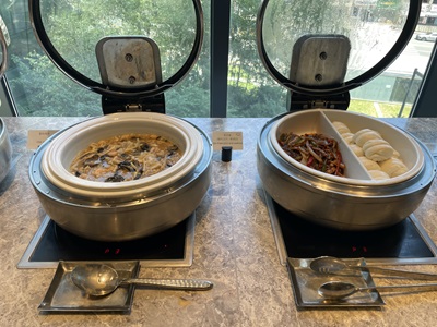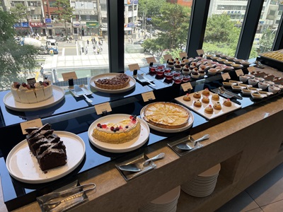 デザートゾーンにはスイーツや果物、ジュースがありました。果物が新鮮で甘いのはもちろん、スイーツの種類も豊富でとてもおいしかったです。印象的だったのは覆盆子で作ったゼリーやヨモギで作ったクレームブリュレがあったことで、韓国らしい味を味わうことができます。
