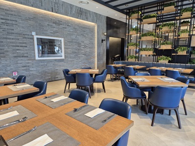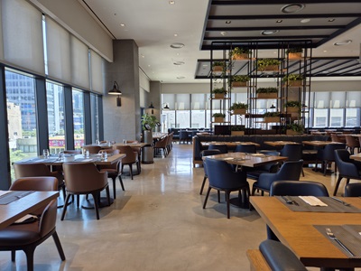 レストランの中はモダンな雰囲気で広く快適です。席の間隔も広いので落ち着いて食事が可能です。また、窓が大きくて明るい光が差し込みます。