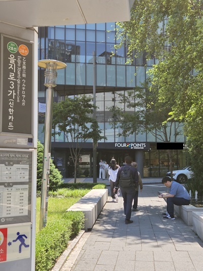 お店は乙支路3街駅の12番出口を出てからすぐ見える「フォーポインツバイシェラトン朝鮮ソウル明洞」の3階にあります。