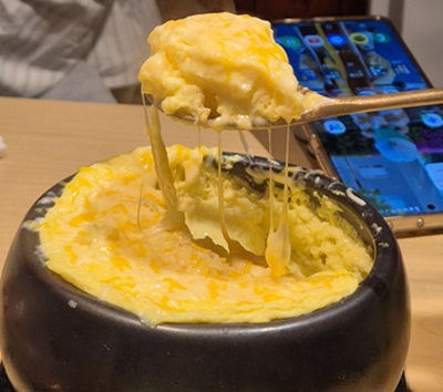 「雪花チーズタマゴ蒸し」はふわふわした卵にすっと伸びるシュレッドチーズが特徴でとてもおいしいです。
