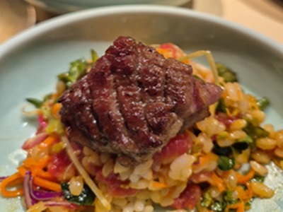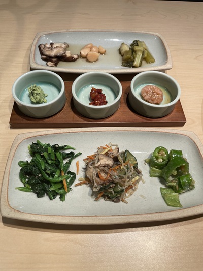 ラウンジスタッフはランチタイムに訪問したので、 お肉のメニューである「プレミア韓牛盛り合わせ」と「ユッケビビンバ」と「雪花チーズタマゴ蒸し」を注文しました。