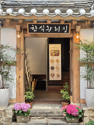 レストランは明洞の中心にあり、入り口は伝統的な門構えを再現しています。