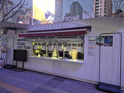 光化門6番出口から直進し、徒歩約1分の場所に、ソウルシティツアーバスのチケットボックスがあります。