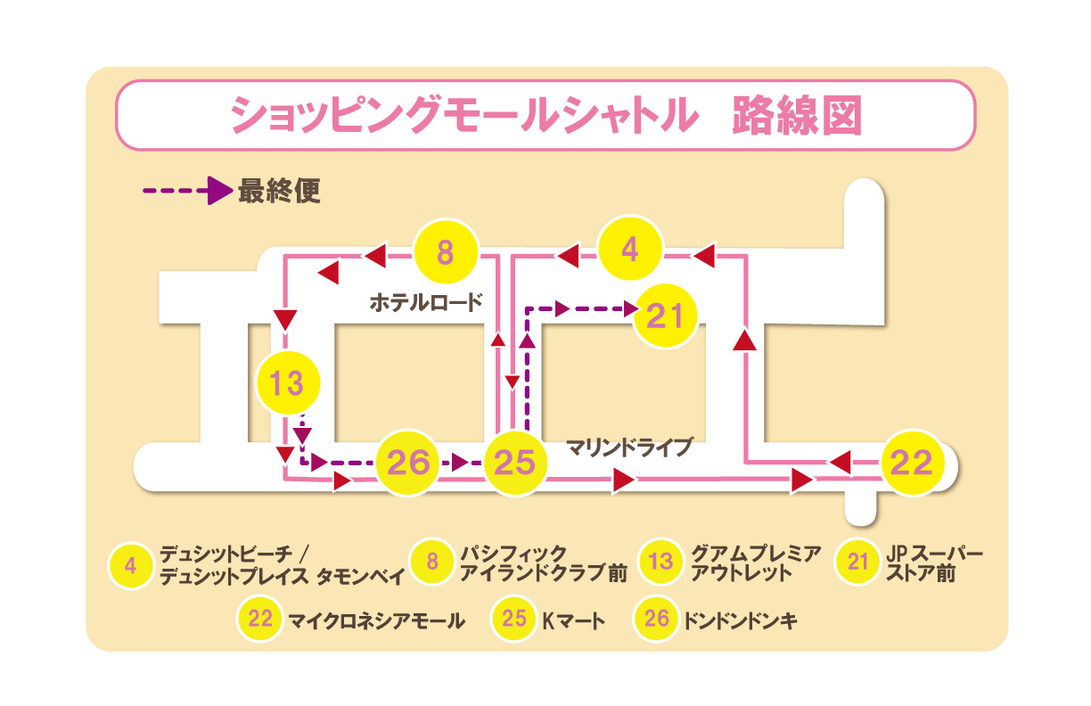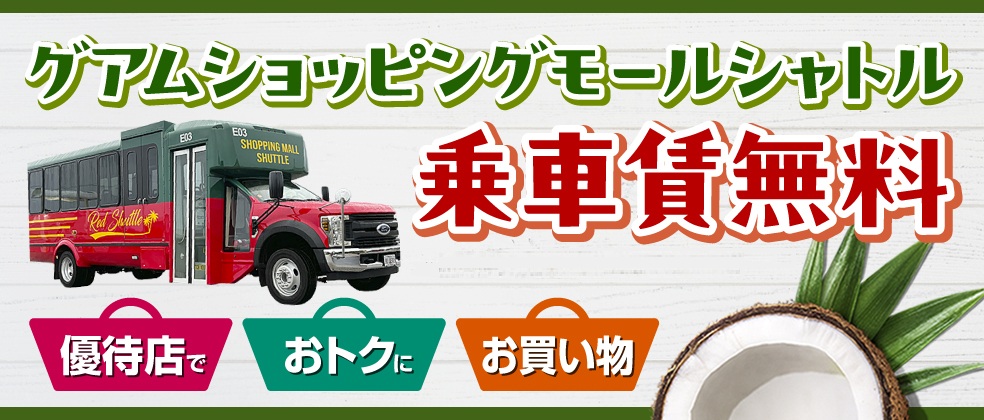 グアムの「ショッピングモールシャトル」乗車時、JCBカードを運転手に提示すると、乗車賃が無料となります!(カード1枚提示につきカード会員ご本人様と同乗の子ども(6~11歳)2名まで無料。)