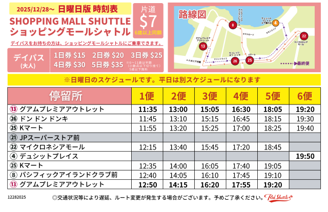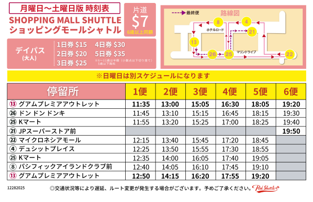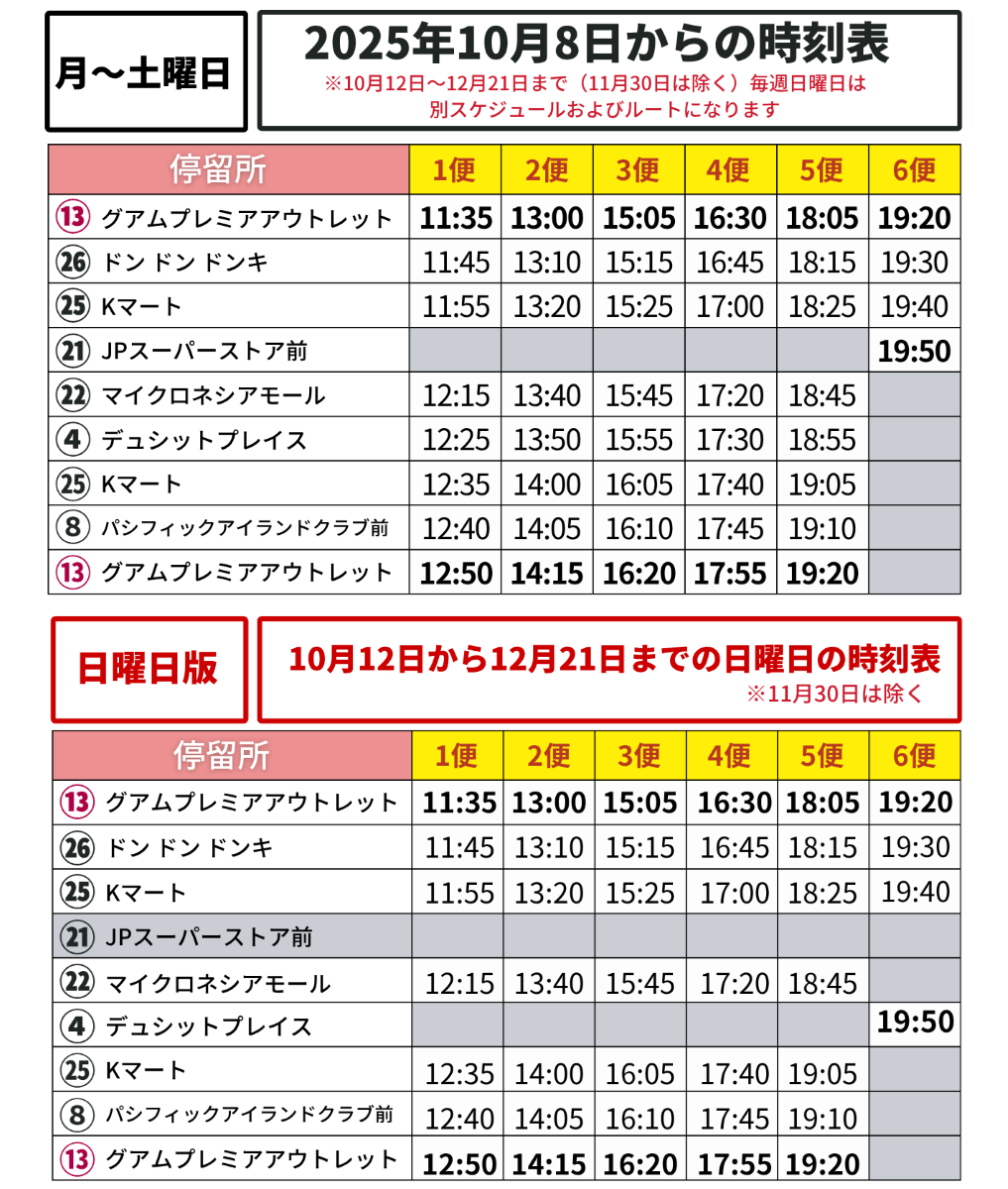 ※時刻表の画像は赤いシャトルバス公式サイトより転用しております。