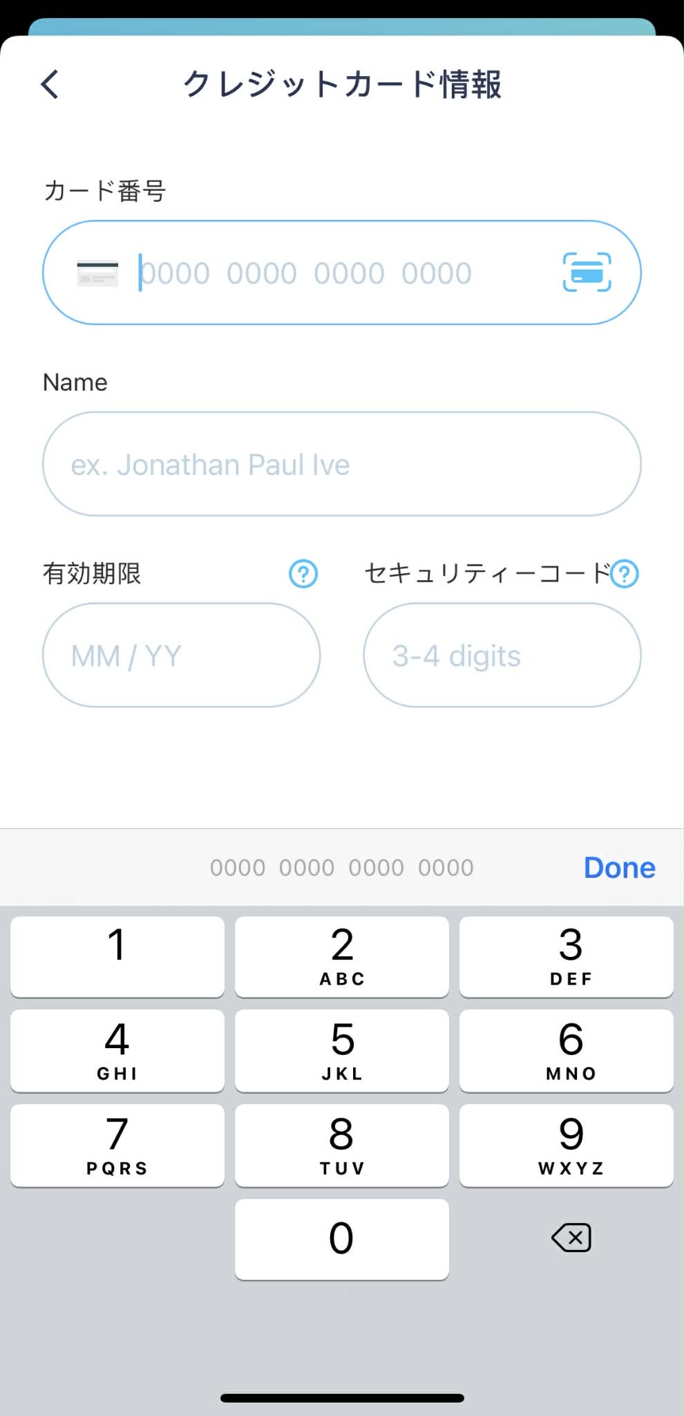 CHARGESPOTアプリで【マイページ】>【決済方法】>【クレジットカード】よりJCBカード情報を登録してください。