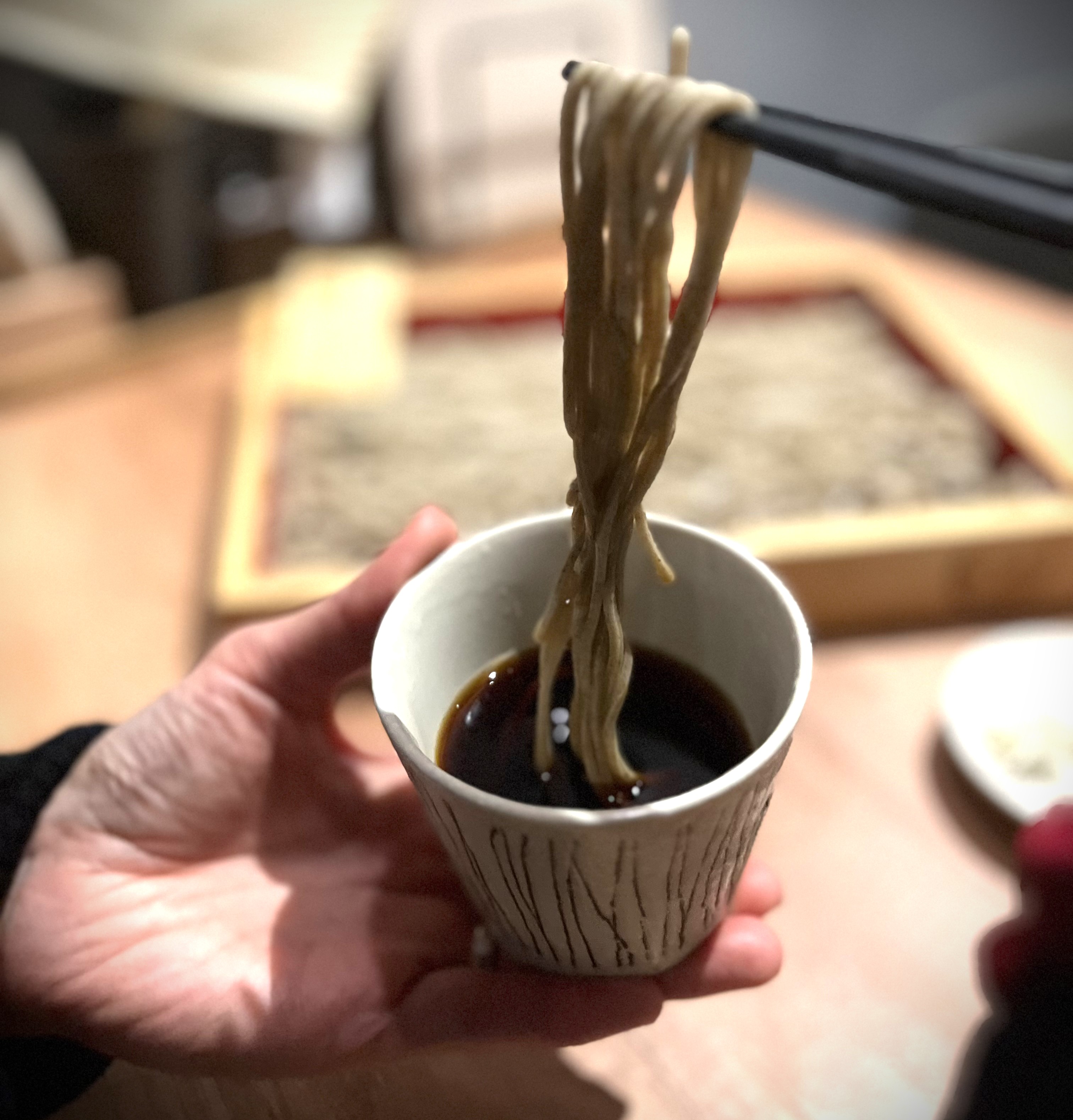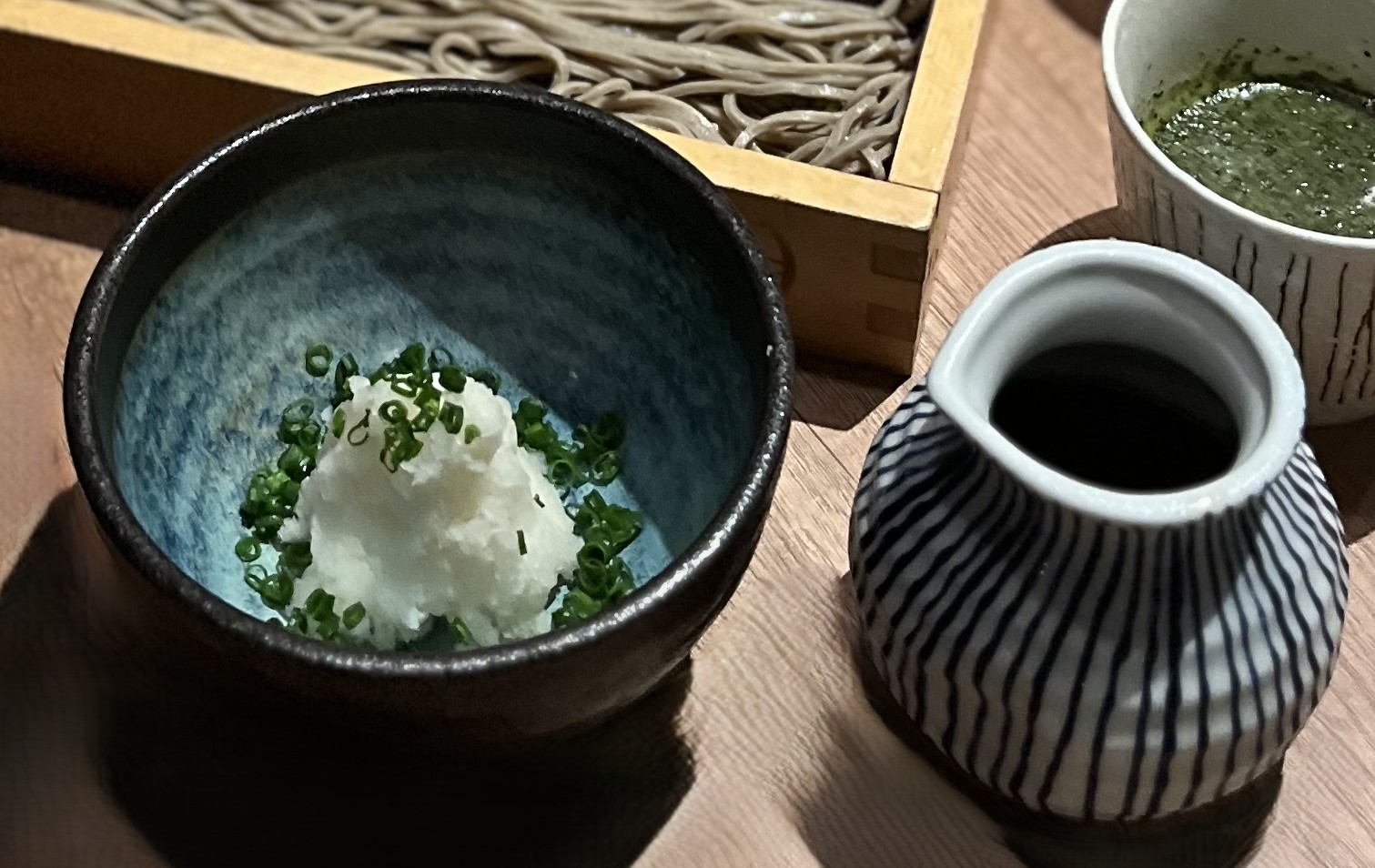 ディナー時間は蕎麦の太さも選べるので、スタッフの方おすすめの「細麺」と「太麺」のコンボに決めました。