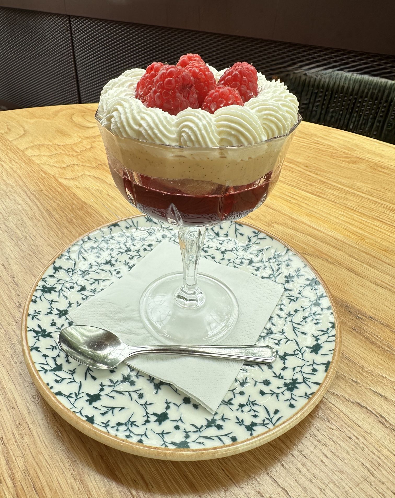 ラズベリーの真紅がホワイトクリームに映えるズッパ・イングレーゼ。リキュールやシロップを染み込ませたスポンジケーキに、ビスケットとカスタードクリームを交互に重ねたイタリアの伝統的なデザートです。ベリーコンポートのゼリーやバニラビーンズもたっぷりで、じっくりと時間をかけて作られています。ベリーの酸味とカスタードクリームやホワイトクリームの甘さが、絶妙なバランスで口の中に広がります。