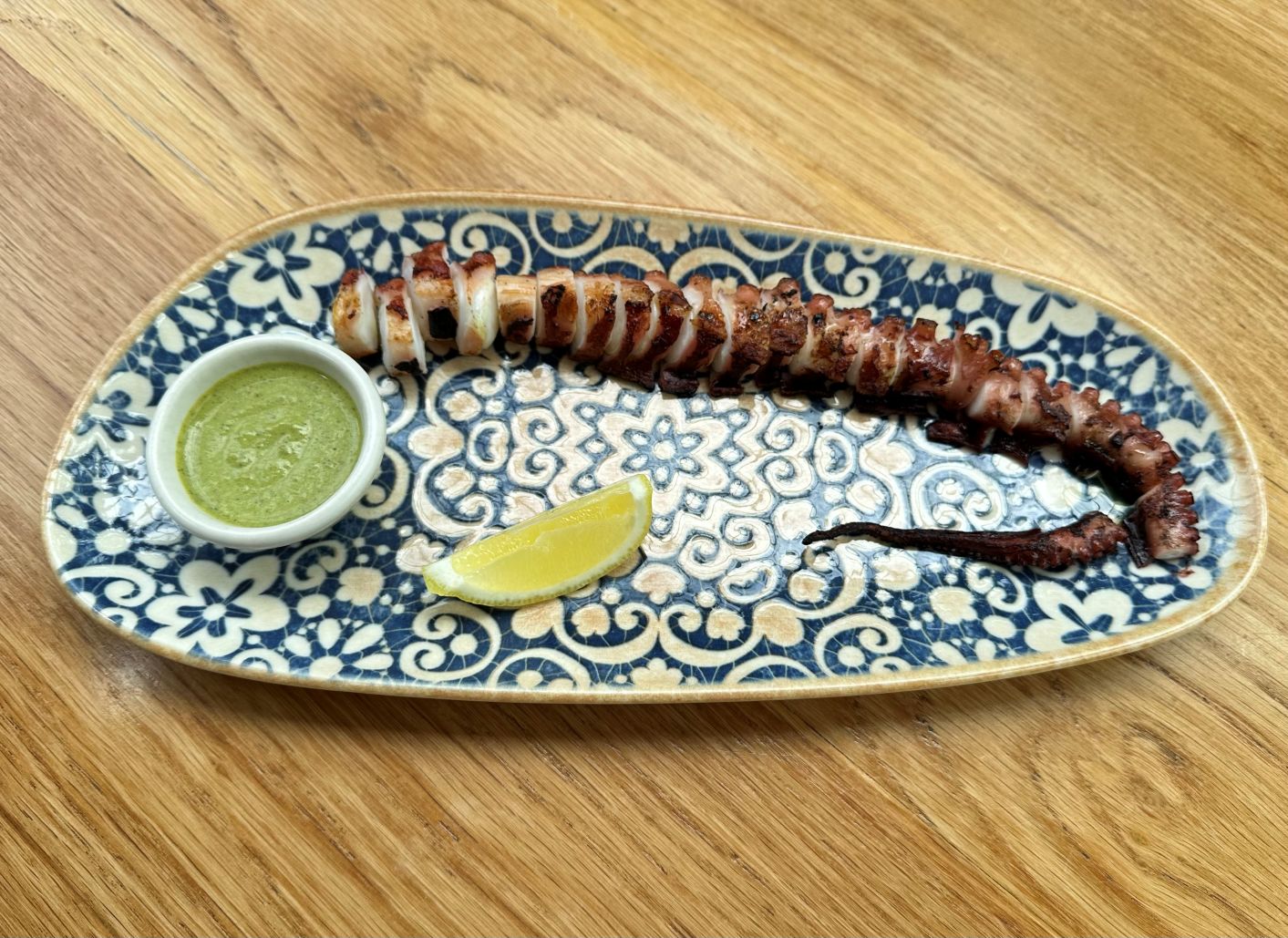 (タコのグリル焼き、グリーン・ハリッサソース添え)