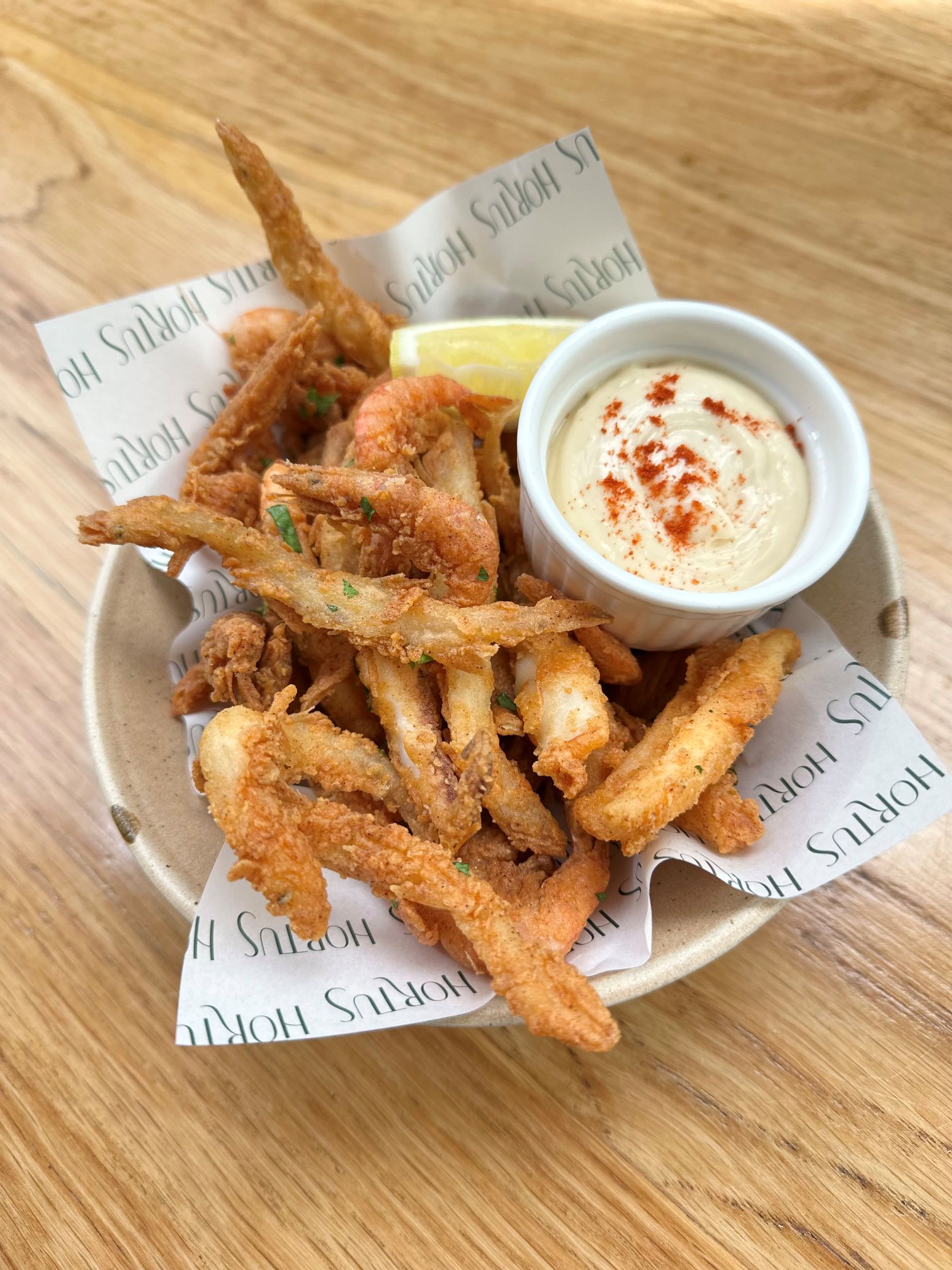 3. Fried school prawns, calamari, smelt, garlic aioli