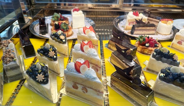 ショーケース(トローリー)には人気のケーキから、不定期に紹介されるシェフの新作がずらりと並んでいます。
