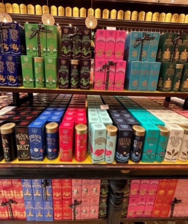 おしゃれなパッケージや色とりどりのティー缶、ロゴ入りティーポットやティーセットなど、思わず手に取ってしまいたくなる魅力的なアイテムの数々。