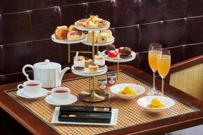 - 「ザ・リッツ・カールトン・ミレニア・シンガポール」内のラウンジ。英国らしいモダンな5段トレーのアフタヌーンティーと、ノンアルコールのシャンパンを提供。スコーン、セイボリー、スイーツなどが美しく盛り付けられた優雅なティースタンドのほかに、チョコレートのプラリネやクッキーも用意。居心地のよい空間でアフタヌーンティーが楽しめる。