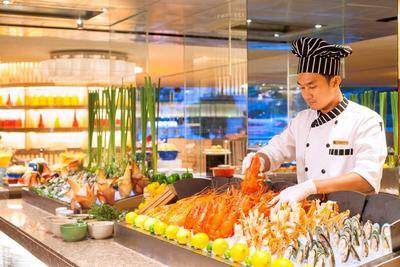 - バンコク市内のホテルでもトップクラスの品数を誇るインターナショナル・ビュッフェ。ビュッフェ以外の時間はカフェとして営業。