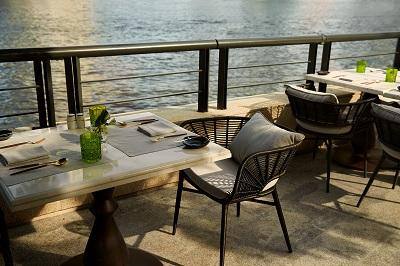 - 5ッ星ホテル「カペラ バンコク」内のメインダイニング。朝食後に西洋料理のランチ・ディナーが楽しめるオールデイダイニングと、高級食材を使用した本格的なタイ料理レストランをあわせ持つ。ロマンチックな雰囲気のテラス席はディナーでの利用がおすすめ。