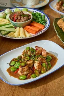 料理および飲み物を1,000THB以上(税・サービス料別)ご注文の方に、「牛肉とササゲの赤カレーペースト炒め」を1皿サービス。