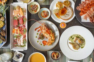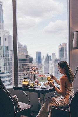 - 「オークラ・プレステージ バンコク」内のオールデイダイニング。季節ごとの華やかなスイーツやセイボリーが楽しめるアフタヌーンティーが人気。朝食からディナーまで、国際色豊かで豊富なアラカルトメニューが堪能できる。