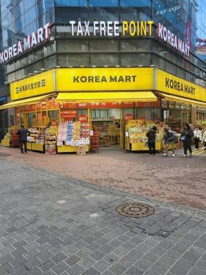 - 食品のおみやげ購入に便利な大型スーパーマーケット。韓国では定番のお菓子などがリーズナブルな価格で販売されている。2階には購入したラーメンを自動調理器で調理して食べられるスペースもある。