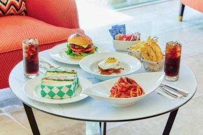 - 上品なデザインのくつろぎ空間で、おいしいコーヒー、SNS映えする色鮮やかなスイーツやカクテル、巨大なモンスターバーガーなどの軽食が満喫できる。