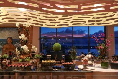 - タモン湾の美しいパノラマビューを楽しみながら、新鮮な食材を使用した最高級の地元料理や世界各地の料理をビュッフェスタイルで楽しめる。