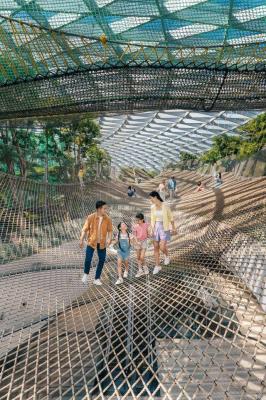 - チャンギ国際空港 ターミナル1隣接の複合施設。世界一の高さを誇る人工滝のほか、人気のアトラクションが盛りだくさん。巨大すべり台、バウンシングネット、ガラス張りの橋、緑の迷路などのアクティビティーが楽しめる。毎晩開催される光と音のショーも見どころ。
