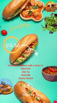 - ベトナムの伝統的なサンドイッチ「バインミー」と、ハワイ風ホットドッグの専門店。サクサク食感のバインミーや、ハワイアンバンズを使用したホットドッグのほかに、爽やかなアロハレモネードも楽しめる。トロピカルにアレンジされたベトナムの味を満喫できる。