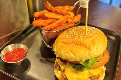 - カラフルな青と赤の外観が目を引く、人気のハンバーガーショップ。ていねいに仕上げたジューシーでボリューム満点のハンバーガーは、地元の方にも愛されている。