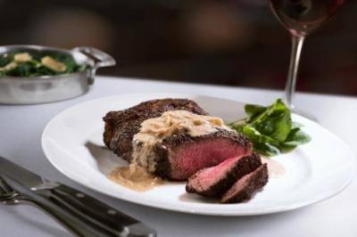 - 質の高い肉を使った熟成ステーキや新鮮なシーフードに加え、厳選されたワインを楽しめるレストラン。深みのある木目を基調とした内装と、アールデコ調のシャンデリアが温かみと重厚感のある空間を演出し、居心地の良い店内でゆったりと食事が味わえる。