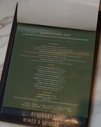 今回は、「シグネチャー アフタヌーンティーセット/Signature Afternoon Tea Set」(1,590THB/2名分)を頼みました。