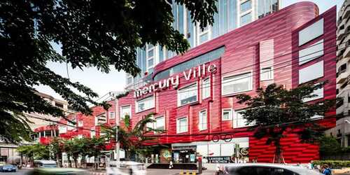 BTS「チットロム駅」で降りて4番出口を出ると、「ザ マーキュリー ヴィレ/The Mercury Ville」デパートが見えます。
