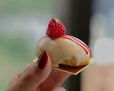 ふんわりなめらかな生地のエクレアに、香り豊かなラズベリークリームをたっぷりとトッピング。