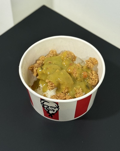 グリーンカレーにフライドチキンの組み合わせは最高です。おいしくないわけがないです。