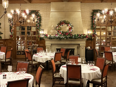 ホリデーシーズンになると店内が特別にデコレーションされます。さらに聖歌隊が各テーブルをまわってリクエストに応えて歌ってくれます。